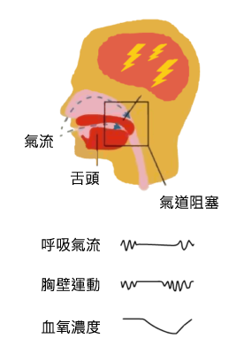 呼吸停止或呼吸氣流顯著減少>90%,持續10秒或以上(呼吸道完全阻塞)。